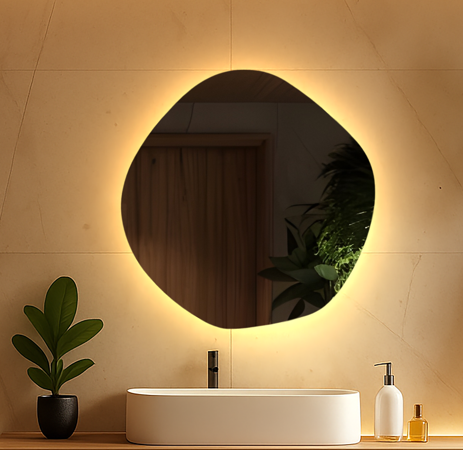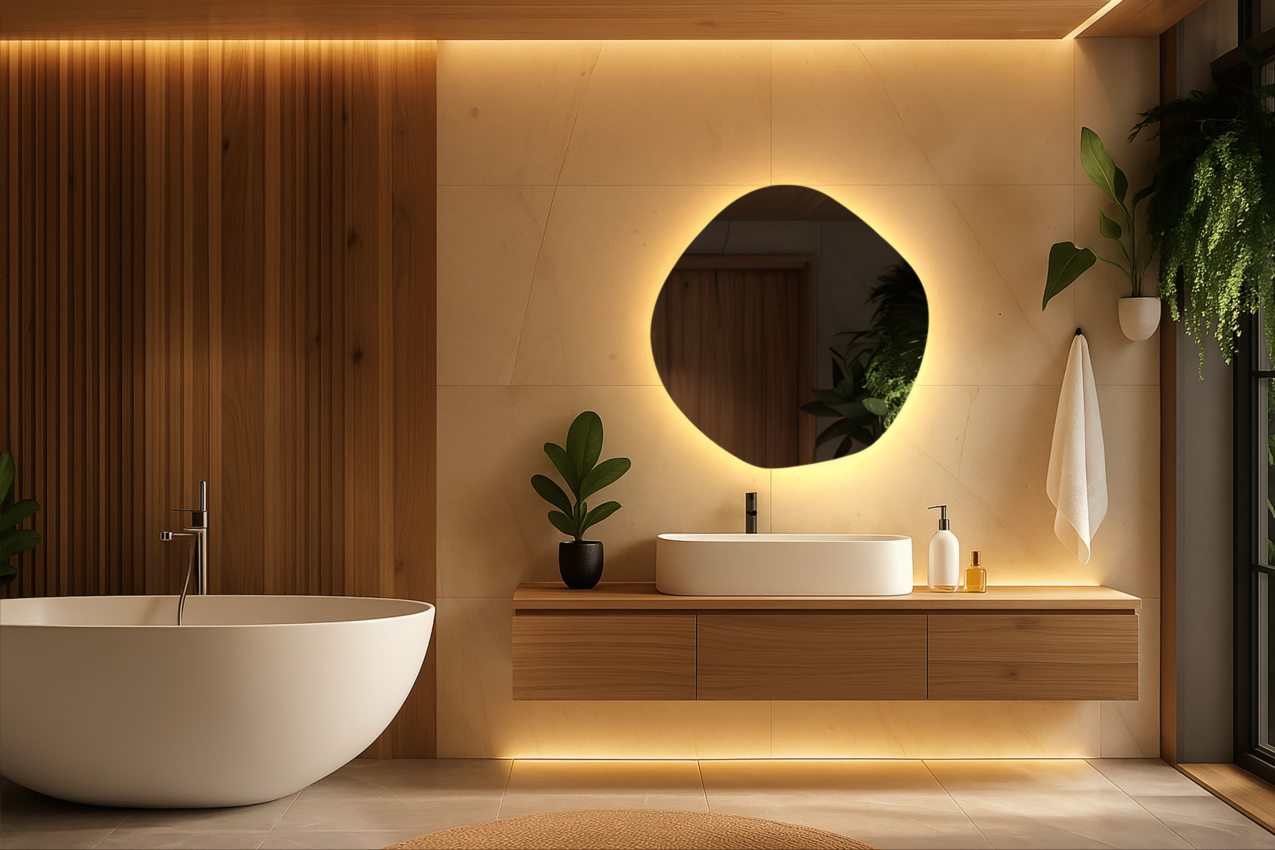 | Luno utmärker sig genom sin minimalistiska design. Frånvaron av en traditionell ram understryker dess moderna karaktär, medan subtil LED-bakgrundsbelysning gömd bakom spegeln skapar en imponerande gloria på väggen, vilket ger en unik atmosfär till varje interiör. |